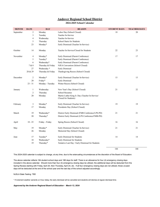 Andover 2025 School Calendar – “So Steve Martin is definitely gonna play Walz on SNL, right?” comedy writer Abby Barr wrote in an X post shared Tuesday morning. That post, and similar calls for Martin to play Walz, have since . Growing up the daughter of a Manchester police lieutenant, Manchester High School Central graduate Grace Stankiewicz couldn’t be more honored to be this year’s recipient of the Michael Briggs Memorial .